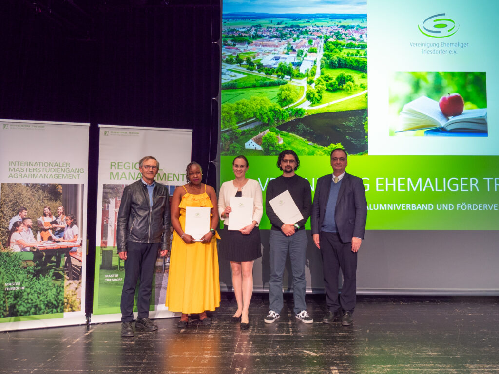 Im Rahmen der Absolventenverabschiedungen im Juli übergab Frau Susanne Gast, Vorsitzende der Vereinigung Ehemaliger Triesdorfer (VET) e.V., und Frau Gabriele Sichler-Stadler, Geschäftsführerin der Vereinigung Ehemaliger Triesdorfer (VET) e.V., sowie Herr Prof. Dr. Bernhard Göbel, Mitglied des Vorstands, Anerkennungspreise für besonderes soziales Engagement.