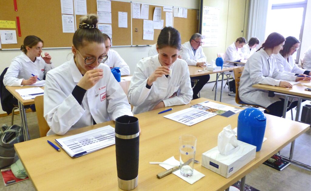 Bei den sensorischen Qualifikationstests stellten die Studierenden ihre erworbenen Kenntnisse und Fähigkeiten unter Beweis. Alle Teilnehmer, darunter auch Uwe Mohr, Leiter der am Lehr-, Versuchs- und Fachzentrum für Milchanalytik in Triesdorf angesiedelten Fachschule für Milchwirtschaftliches Laborwesen waren sich einig: ein toller, lehrreicher Workshop mit vielen Impulsen für eine erfolgreiche Karriere in der Milchwirtschaft.